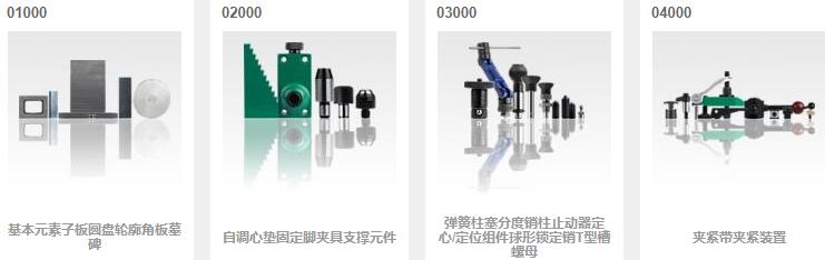 灵活的标准组件系统的产品包括:Norelem底板,Norelem圆板,Norelem角板,线夹,夹具,操作部件。Norelem四面角板,Norelem切换定位,Norelem气动夹具等。